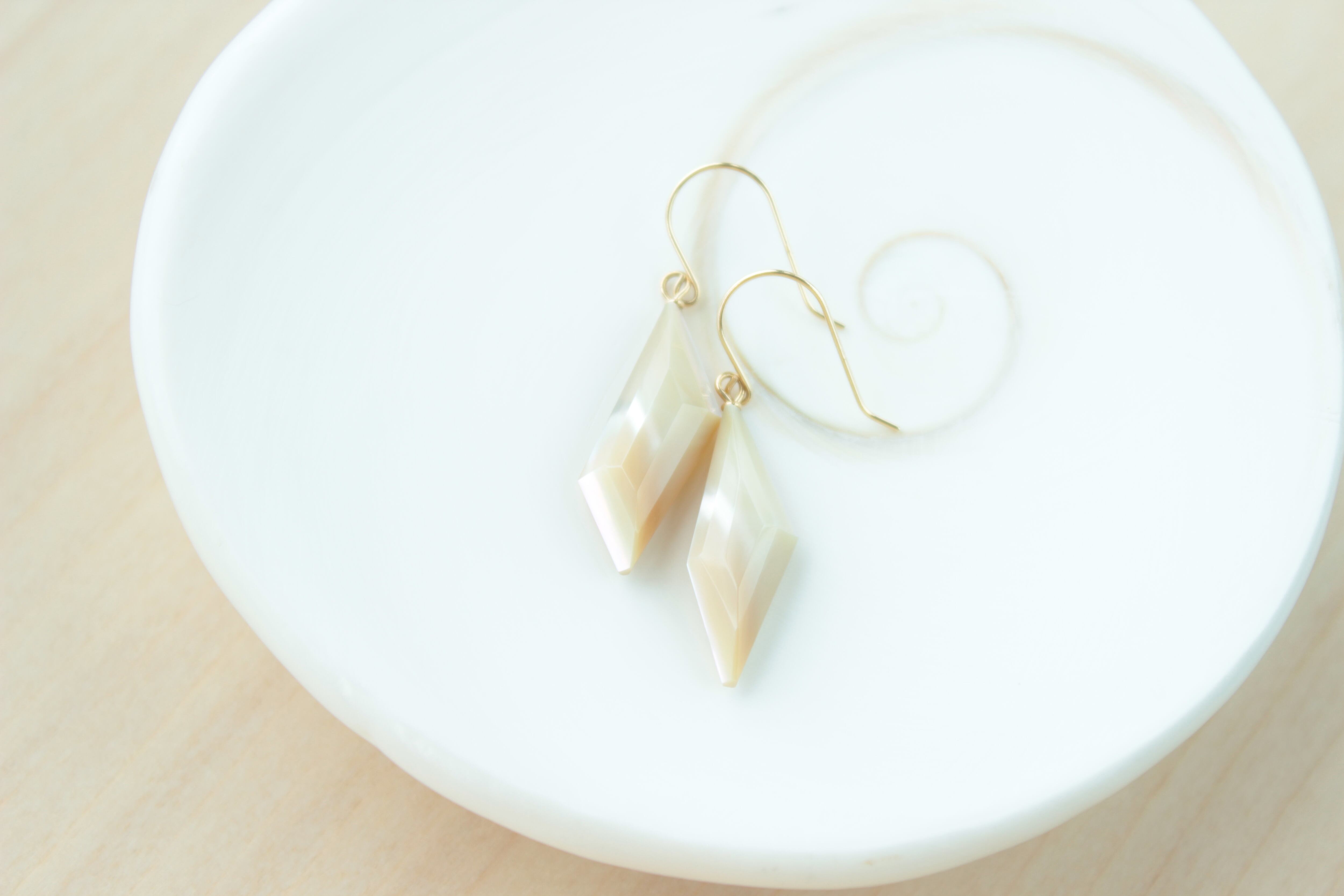 ※夜光貝の表面は指先の油分等が付着するとくすみの原因となりやすいので、フックの部分を持って取り外しを行なってくださいませ。
